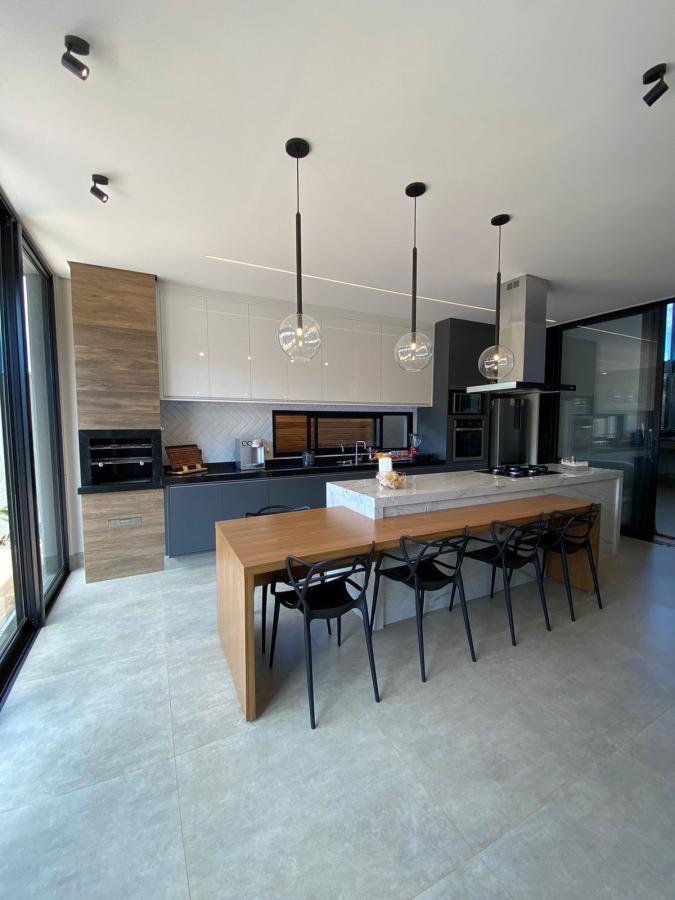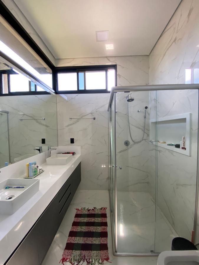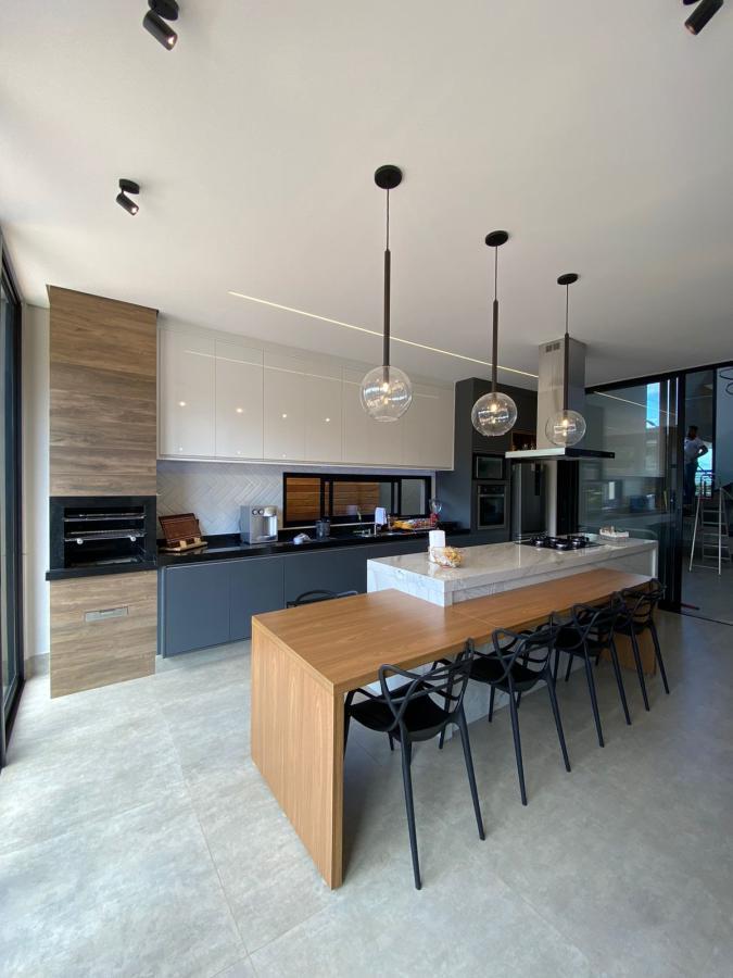 Pensando em morar em um condomínio bem planejado, com muito verde e muita harmonia, então venha conhecer este sobrado com 03 suítes sendo a master com closet e sala de tv no piso superior. Piso térreo possui sala, cozinha gourmet, lavabo, lavanderia, piscina, vestiário. São 04 vagas de garagem, terreno 360 mts², construídos 252 mts². Possui ótimos armários, ótimo projeto de iluminação, ar condicionado nos ambientes.