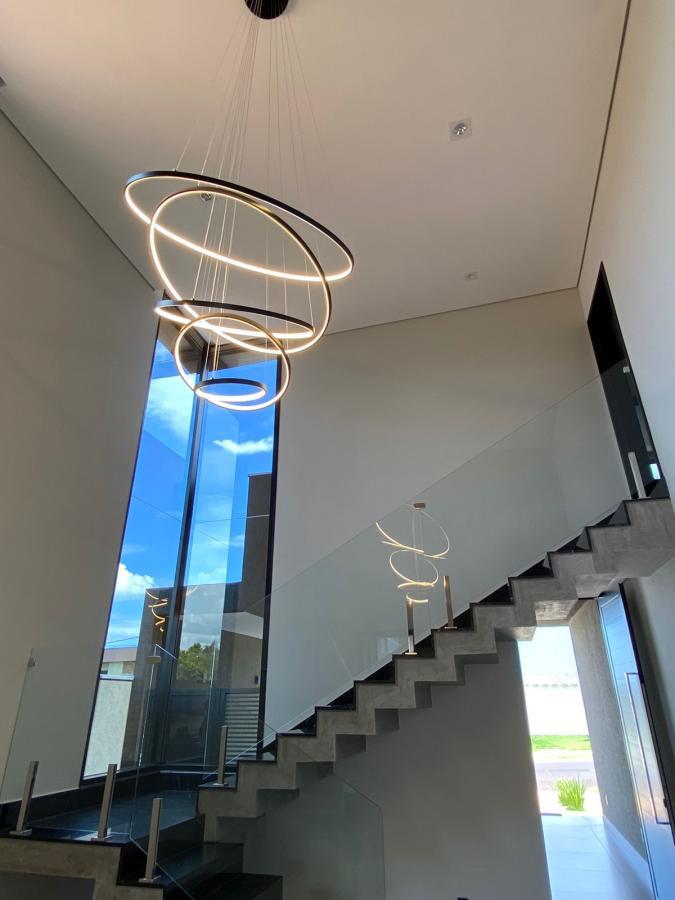 A casa é térrea, com um belo projeto de iluminação, portas laqueadas, janelas automatizadas, piscina aquecida, rica em arm...