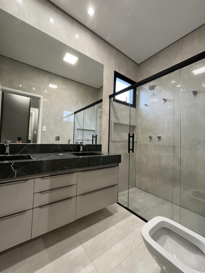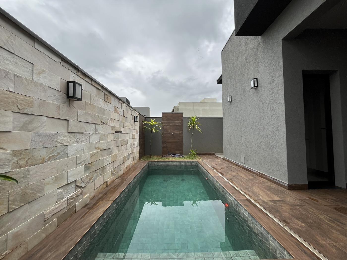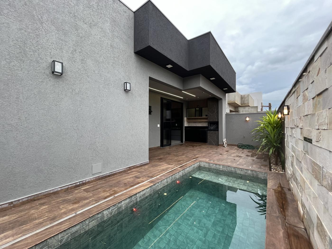 Esta casa térrea possui acabamentos finos, terreno com a frente de 11,08 mts. Armários, box, espelhos dos banheiros, iluminação, boiler, placas solares, serão entregues instalados. Paisagismo também será um diferencial. 03 suítes sendo 01 com closet, lavabo, cozinha ampla, espaço gourmet, piscina com hidro, cascata e led. Sala dois ambientes com pé direito de 5 mts.
