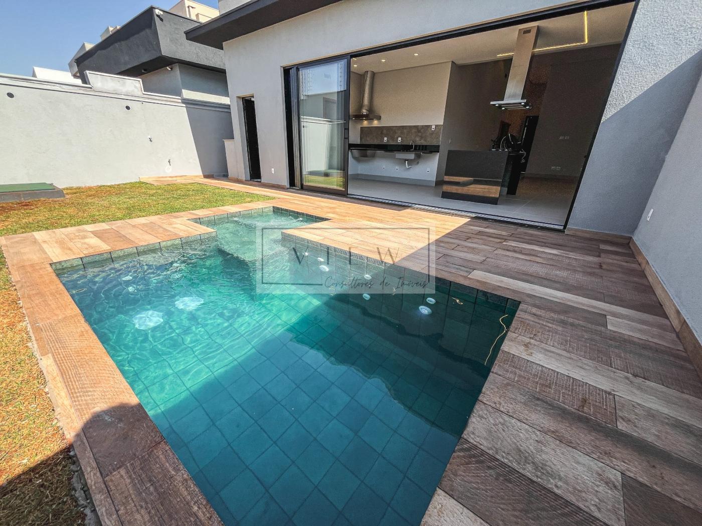 Casa térrea pronta para morar no Vivendas da Mata. Com 173,08m² de área construída em um terreno de 308,37m², possui sala ampla com pé direito alto, home office, lavabo, 3 suítes, cozinha equipada com cooktop e coifa, varanda gourmet com churrasqueira, lavanderia com acesso interno e externo, vestiário, piscina de alvenaria com hidro e preparação para aquecimento. A casa será entregue com aquecimento solar nos chuveiros e torneiras e boiler instralado, preparação para energia fotovoltaica, projeto de iluminação 100% LED. O condomínio possui portaria e segurança 24 horas e clube privativo na área externa.