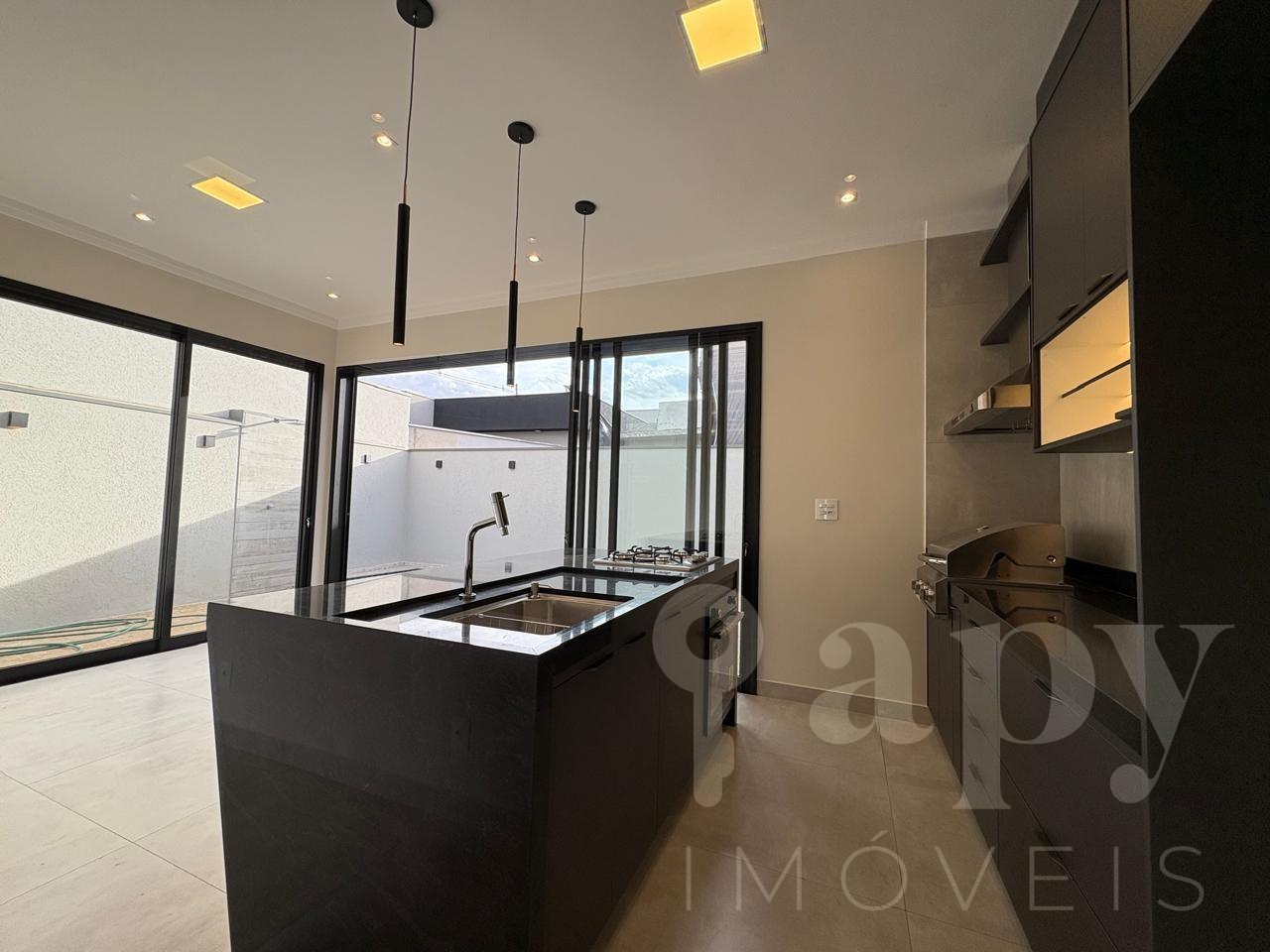 Uma casa térrea prontinha no Condomínio Valência. Com 150m² em um terreno de 250m², possui sala com pé direito alto, lavabo, cozinha gourmet planejada já montada com cooktop, forno e churrasqueira inox com coifa; 3 suítes completas com armários, sendo uma máster com closet e banho duplo; piscina aquecida e 4 vagas de garagem.