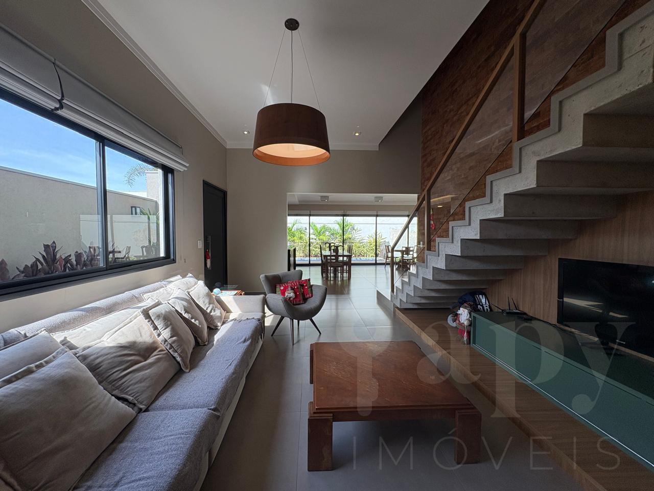 A casa é térrea, com um belo projeto de iluminação, portas laqueadas, janelas automatizadas, piscina aquecida, rica em arm...