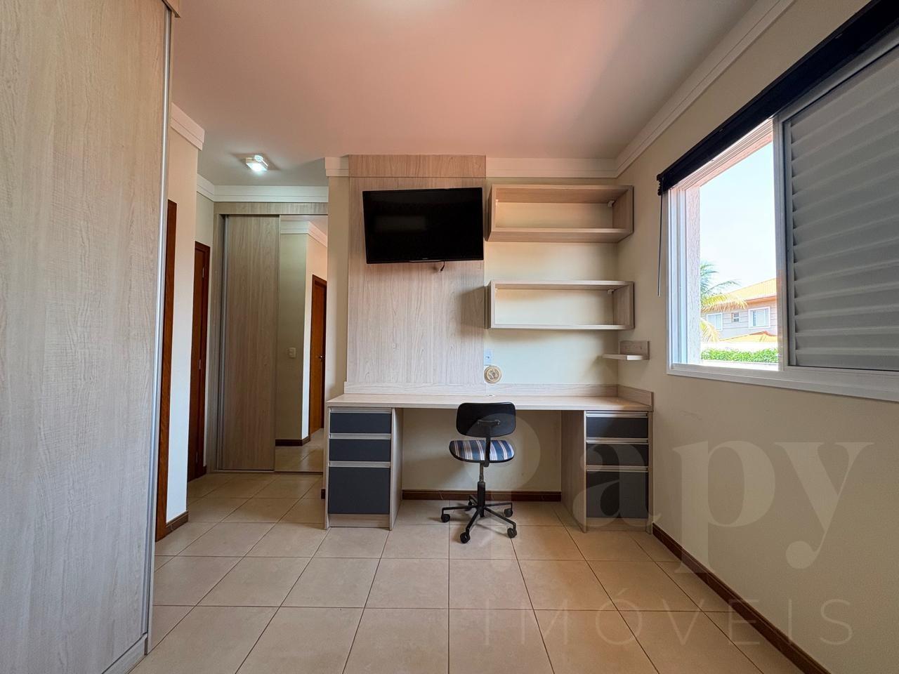 Uma oportunidade para você que deseja morar no Condomínio Laranjeiras! No térreo: sala 2 ambientes, lavabo, ampla varanda gourmet com churrasqueira, sala privativa que pode ser revertida para suíte, piscina com iluminação e aquecimento, depósito, cozinha planejada equipada com fogão e coifa, área de serviço, banho de serviço e 4 vagas de garagem, sendo 2 cobertas e 2 descobertas. No piso superior: 3 suítes climatizadas e completas em armários, sendo uma máster extremamente espaçosa e com closet. A casa possui energia fotovoltaica e está em perfeito estado de conservação. Condomínio charmoso, com ampla área verde, lazer completo, segurança e portaria 24 horas, padrão Pereira Alvim.
